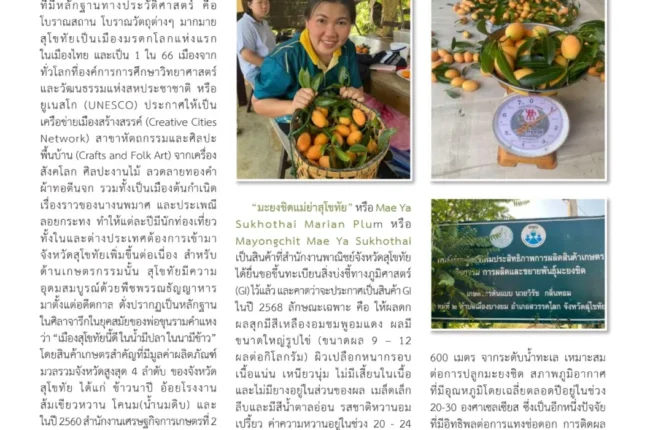 The Mae Ya Marian Plum, produced in the districts of Sawankhalok, Si Samrong, and Mueang Sukhothai in Sukhothai Province, is characterized by its large, oval-shaped fruit. When ripe, it is yellow-pinkish-red in color, with a…
