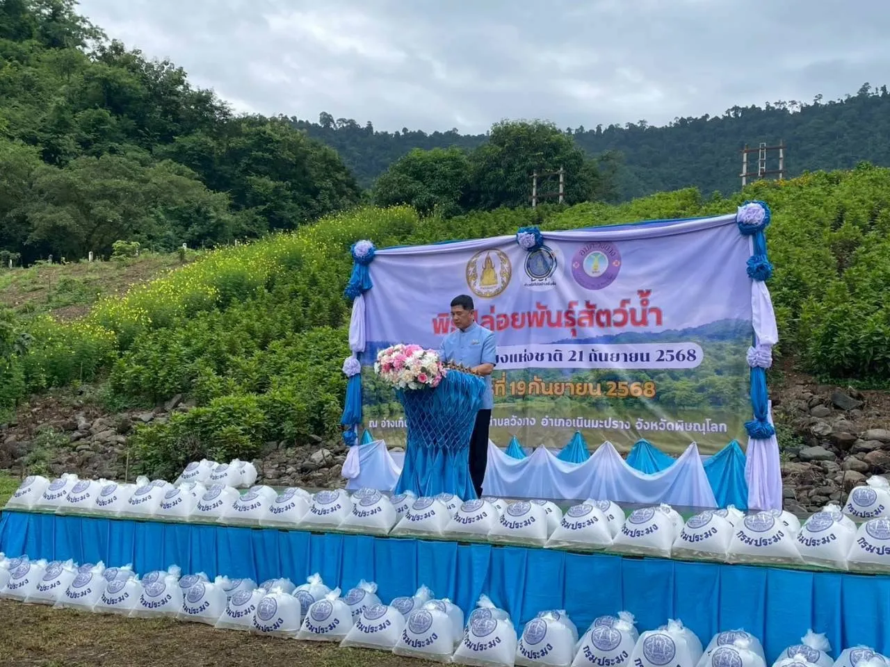 วันที่ 19 กันยายน 2568 นางธัญญ์พิชชา เถระรัชชานนท์ ผู้อำนวยการสำนักงานเศรษฐกิจการเกษตรที่ 2 (ผอ.สศท.2 พิษณุโลก) มอบหมายให้ นายวาริท ชูสกุล ผู้อำนวยการส่วนวิจัยและประเมินผล พร้อมด้วยเจ้าหน้าที่ส่วนวิจัยและประเมินผล เข้าร่วมพิธีปล่อยพันธุ์ปลาเนื่องในวันประมงแห่งชาติ ประจำปี 2568 โดยปล่อยพันธุ์สัตว์น้ำ จำนวน 200,099 ตัว อาทิ ปลาบึก ตะเพียนทอง ตะเพียนขาว และปลากระแห ณ แหล่งน้ำอ่างเก็บน้ำทุ่งนาดี หมู่ 5 ต.วังยาว อ.เนินมะปราง จ.พิษณุโลก วัตถุประสงค์ เพื่อเป็นการฟื้นฟู/อนุรักษ์สัตว์น้ำและทรัพยากรสัตว์น้ำ โดยมีนายทรงพล วิชัยขัทคะ รองผู้ว่าราชการจังหวัดพิษณุโลก เป็นประธานในพิธี