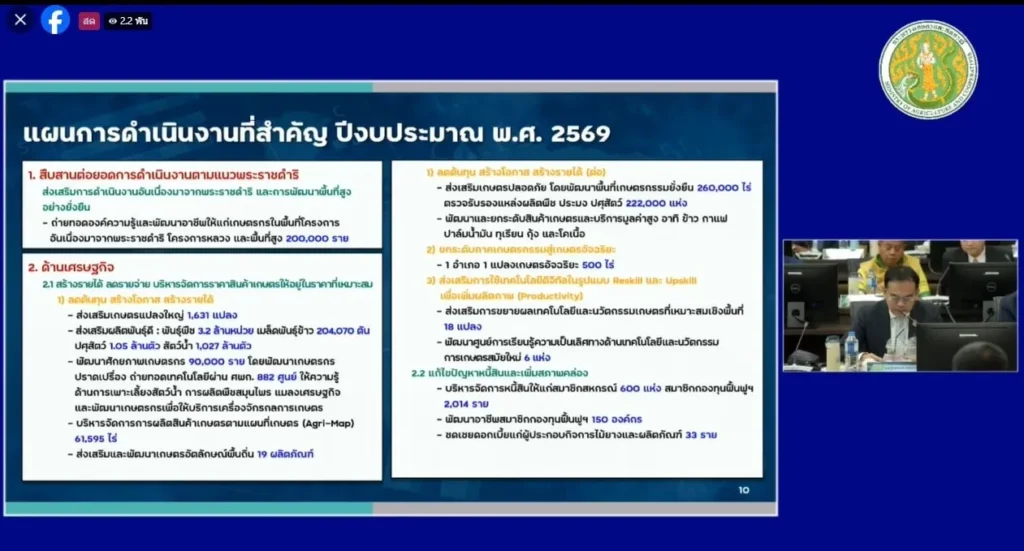 วันที่ 2 ตุลาคม 2568 นางธัญญ์พิชชา เถระรัชชานนท์ ผู้อำนวยการสำนักงานเศรษฐกิจการเกษตรที่ 2 (ผอ.สศท.2 พิษณุโลก) พร้อมด้วยเจ้าหน้าที่ สศท.2 เข้าร่วมรับฟังการประชุมมอบนโยบายขับเคลื่อนงานกระทรวงเกษตรและสหกรณ์ ผ่านการถ่ายทอดสด Facebook Page : กระทรวงเกษตรและสหกรณ์ โดยมี ร้อยเอก ธรรมนัส พรหมเผ่า รองนายกรัฐมนตรี และ รัฐมนตรีว่าการกระทรวงเกษตรและสหกรณ์ นายอามินทร์ มะยูโซ๊ะ รัฐมนตรีช่วยว่าการกระทรวงเกษตรและสหกรณ์ นายนเรศ ธำรงค์ทิพยคุณ รัฐมนตรีช่วยว่าการกระทรวงเกษตรและสหกรณ์ เป็นประธาน