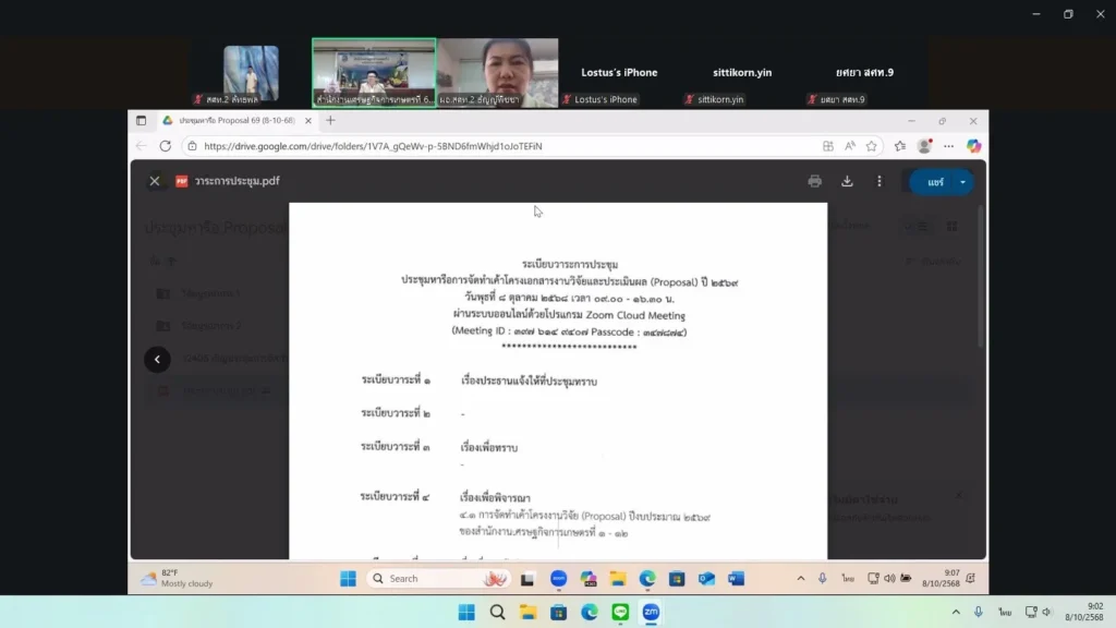 วันที่ 8 ตุลาคม 2568 นางธัญญ์พิชชา เถระรัชชานนท์ ผู้อำนวยการสำนักงานเศรษฐกิจการเกษตรที่ 2 (ผอ.สศท.2 พิษณุโลก) พร้อมด้วย นายวาริท ชูสกุล ผู้อำนวยการส่วนวิจัยและประเมินผล และเจ้าหน้าที่ส่วนวิจัยและประเมินผล เข้าร่วมประชุมหารือการจัดทำเค้าโครงเอกสารงานวิจัยและประเมินผล (Proposal) ปี 2569 ผ่านระบบออนไลน์ Zoom โดยมี นางสาวนริศรา เอี่ยมคุ้ย ผู้อำนวยการสำนักงานเศรษฐกิจการเกษตรที่ 6 เป็นประธานการประชุม