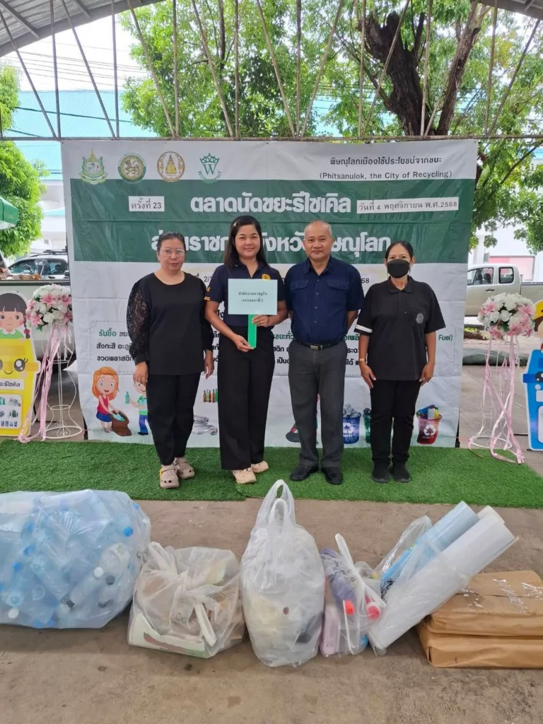 วันที่ 4 พฤศจิกายน 2568 นางธัญญ์พิชชา เถระรัชชนนท์ ผู้อำนวยการสำนักงานเศรษฐกิจการเกษตรที่ 2 (ผอ.สศท.2 พิษณุโลก) มอบหมายให้ นางสาวมยุฉัตร์ นิยม นักจัดการงานทั่วไปชำนาญการ และขณะทำงานดำเนินงานลดขยะมูลฝอย สศท.2 เข้าร่วมกิจกรรมตลาดนัดขยะรีไซเคิล ครั้งที่ 2 ประจำปีงบประมาณ พ.ศ. 2569 ขับเคลื่อนการดำเนินงาน “พิษณุโลก เมืองใช้ประโยชน์จากขยะ (Phitsanulok, the City of Recycling)” เพื่อสร้างความรู้ ความตระหนักในการคัดแยกขยะ การมีส่วนร่วมในการลดโลกร้อน มีกรอบการดำเนินงานจัดทำระบบเก็บและขนอย่างมีประสิทธิภาพได้รับการกำจัดอย่างถูกต้องตามหลักวิชาการ โดยใช้หลัก 3 ช. คือ ใช้น้อย ใช้ซ้ำ และนำกลับมาใช้ใหม่ ณ โดมจอดรถฝั่งศาลาประชาคม ศาลากลางจังหวัดพิษณุโลก โดยมีนายบุญเหลือ บารมี รองผู้ว่าราชการจังหวัดพิษณุโลก เป็นประธานเปิดกิจกรรมดังกล่าว