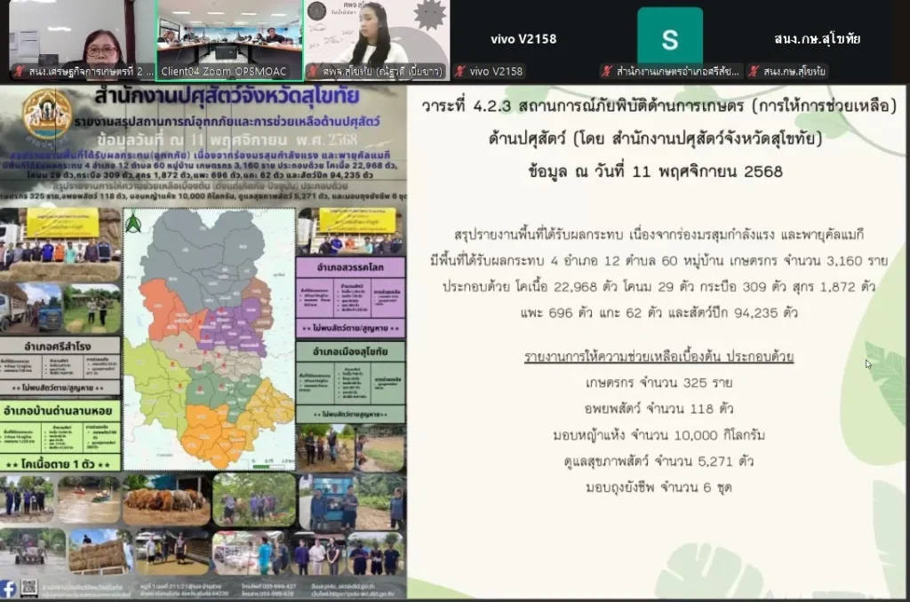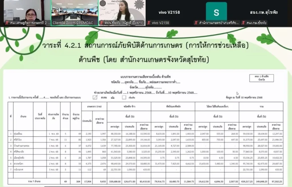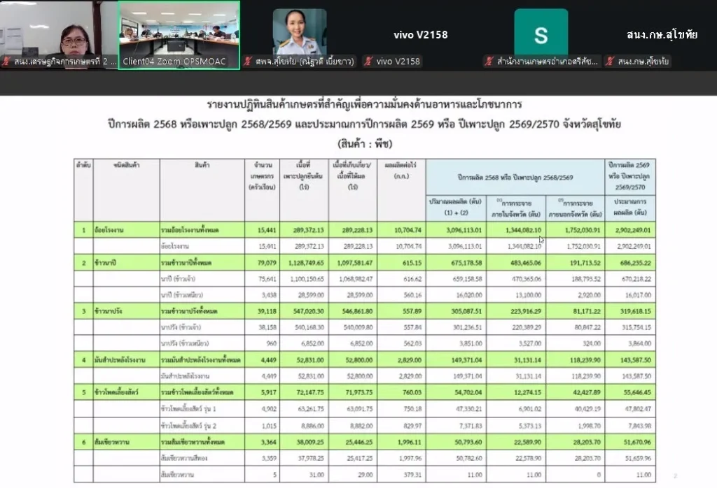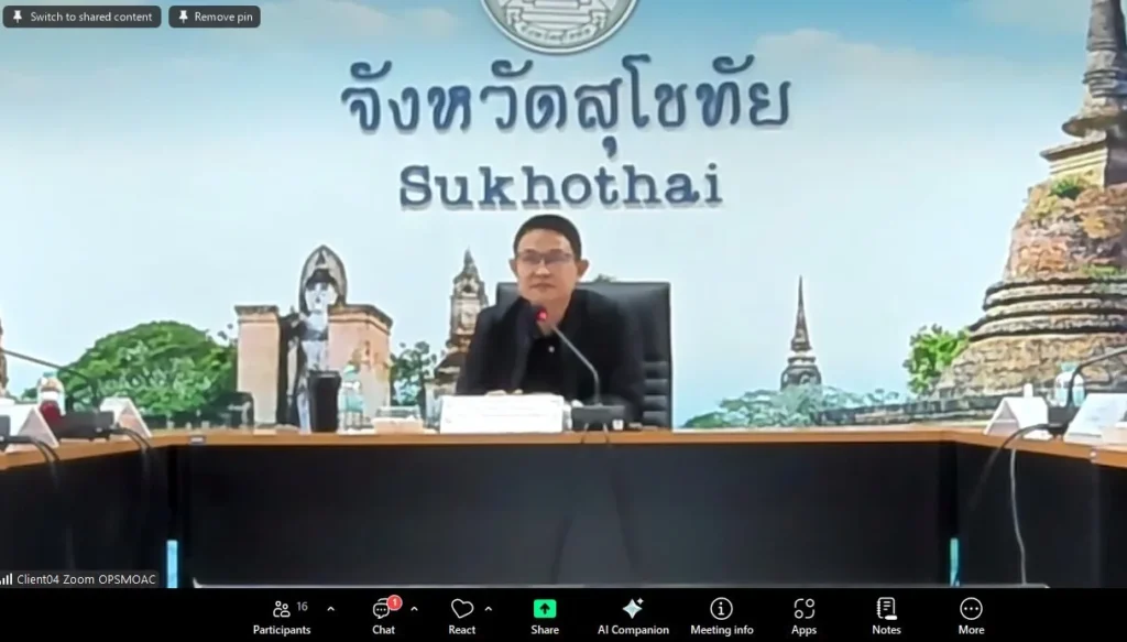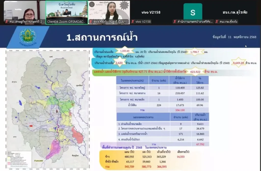 วันที่ 12 พฤศจิกายน 2568 นางธัญญ์พิชชา เถระรัชชานนท์ ผู้อำนวยการสำนักงานเศรษฐกิจการเกษตรที่ 2 (ผอ.สศท.2 พิษณุโลก) มอบหมายให้นางสุธาทิพย์ ศรีสรรพกิจ นักวิเคราะห์นโยบายและแผนชำนาญการพิเศษ เข้าร่วมประชุมคณะกรรมการขับเคลื่อนงานด้านการเกษตรระดับจังหวัด จังหวัดสุโขทัย ครั้งที่ 10/2568 ผ่านระบบออนไลน์ Zoom โดยมี นายศรัทธา ศรีทิพงศ์ เกษตรและสหกรณ์จังหวัดสุโขทัย เป็นประธานการประชุม