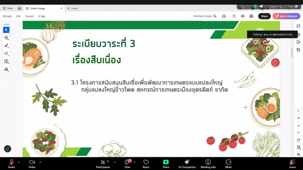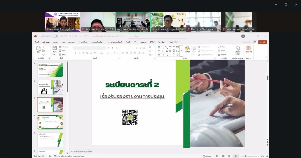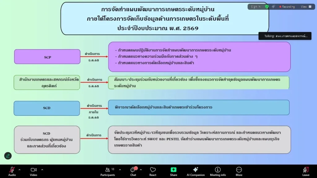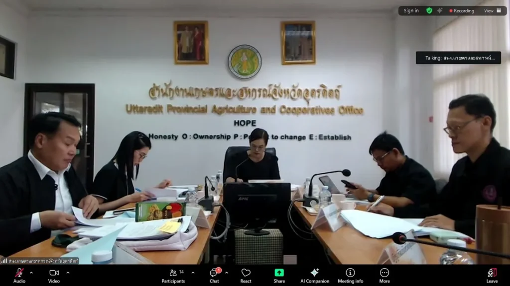 วันที่ 14 พฤศจิกายน 2568 นางธัญญ์พิชชา เถระรัชชานนท์ ผู้อำนวยการสำนักงานเศรษฐกิจการเกษตรที่ 2 (ผอ.สศท.2) เข้าร่วมประชุมคณะกรรมการขับเคลื่อนงานด้านการเกษตรจังหวัดอุตรดิตถ์ (SCP อุตรดิตถ์) ครั้งที่ 11/2568 ผ่านระบบออนไลน์ Zoom โดยมี นางสาวกนกอร แสงอรุณ เกษตรและสหกรณ์จังหวัดอุตรดิตถ์ เป็นประธานการประชุม