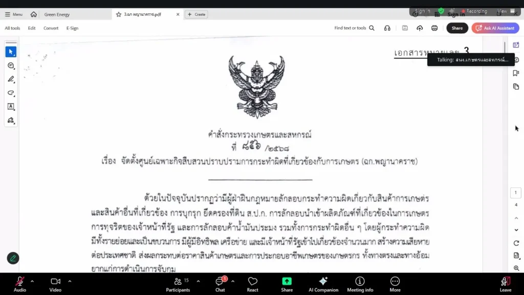 - การจัดตั้งศูนย์เฉพาะกิจสืบสวนปราบปรามการกระทําผิดที่เกี่ยวข้องกับการเกษตร (ฉก.พญานาคราช)