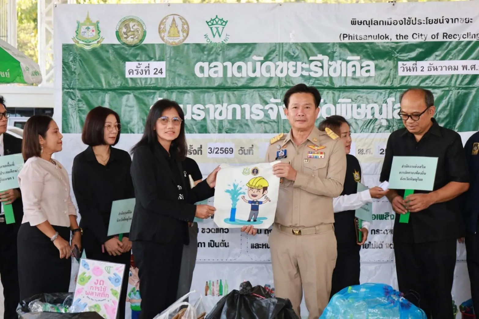 วันที่ 2 ธันวาคม 2568 นางธัญญ์พิชชา เถระรัชชานนท์ ผู้อำนวยการสำนักงานเศรษฐกิจการเกษตรที่ 2 (ผอ.สศท.2 พิษณุโลก) มอบหมายให้ นางสาวมยุฉัตร์ นิยม นักจัดการงานทั่วไปชำนาญการ และคณะทำงานดำเนินงานลดขยะมูลฝอย สศท.2 เข้าร่วมกิจกรรมตลาดนัดขยะรีไซเคิล ครั้งที่ 3 ประจำปีงบประมาณ พ.ศ. 2569 ขับเคลื่อนการดำเนินงาน “พิษณุโลก เมืองใช้ประโยชน์จากขยะ (Phitsanulok,the City of Recycling)” เพื่อสร้างความรู้ ความตระหนักในการคัดแยกขยะ การมีส่วนร่วมในการลดโลกร้อน มีกรอบการดำเนินงานจัดทำระบบเก็บและขนอย่างมีประสิทธิภาพได้รับการกำจัดอย่างถูกต้องตามหลักวิชาการ โดยใช้หลัก 3 ช. คือ ใช้น้อย ใช้ซ้ำ และนำกลับมาใช้ใหม่ ณ โดมจอดรถฝั่งศาลาประชาคม ศาลากลางจังหวัดพิษณุโลก โดยมีนายเกียรติศักดิ์ ตรงศิริ ผู้ว่าราชการจังหวัดพิษณุโลก เป็นประธานเปิดกิจกรรมดังกล่าว