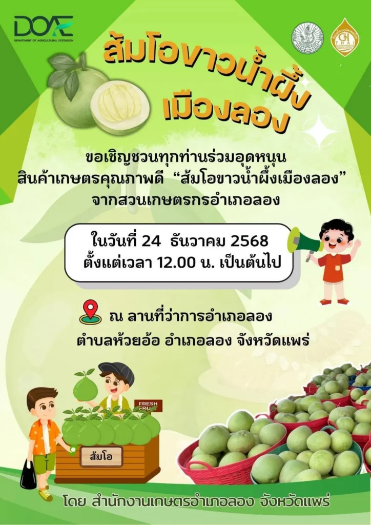 วันที่ 24 ธันวาคม 2568 ตั้งแต่เวลา 12.00 น. เป็นต้นไป ณ ลานที่ว่าการอำเภอลอง ตำบลห้วยอ้อ อำเภอลอง จังหวัดแพร่