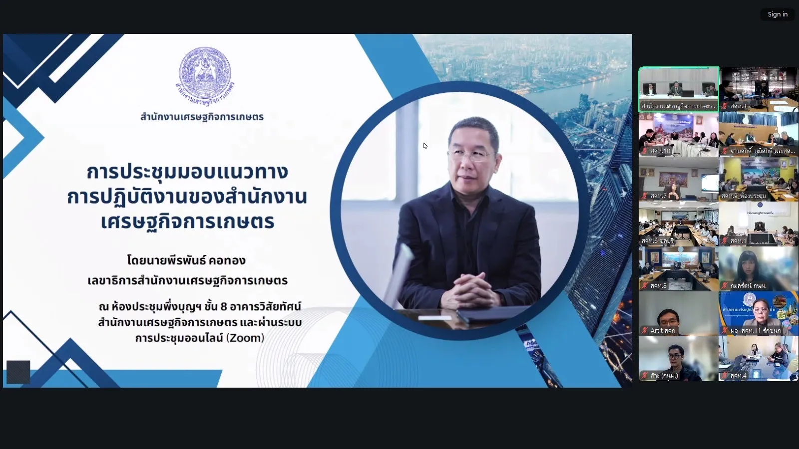 วันที่ 9 มกราคม 2569 นางธัญญ์พิชชา เถระรัชชานนท์ ผู้อำนวยการสำนักงานเศรษฐกิจการเกษตรที่ 2 (ผอ.สศท.2) พร้อมด้วยนางสุธาทิพย์ ศรีสรรพกิจ ผู้อำนวยการส่วนแผนพัฒนาเขตเศรษฐกิจการเกษตร นายวาริท ชูสกุล ผู้อำนวยการส่วนวิจัยและประเมินผล นางสาวปานรดา ถาเรือน ผู้อำนวยการส่วนสารสนเทศการเกษตร และนางสาวมยุฉัตร์ นิยม หัวหน้าฝ่ายบริหารทั่วไป และเจ้าหน้าที่ สศท.2 ร่วมประชุมรับฟังการชี้แจงแนวทางการปฏิบัติงานของสำนักงานเศรษฐกิจการเกษตร ของ นายพีรพันธ์ คอทอง เลขาธิการสำนักงานเศรษฐกิจการเกษตร ผ่านระบบออนไลน์ ZOOM